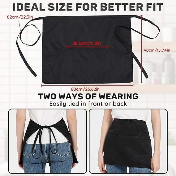 Tablier de chef de serveuse avec 3 poches imperméable pour le nettoyage de la cuisine Tablier de taille avec logo personnalisé pour hommes et femmes
