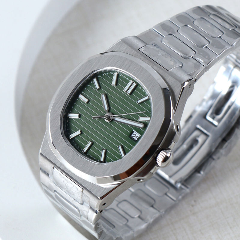 Montre personnalisée avec logo, mouvement automatique NH35, montres mécaniques pour hommes, bracelet en acier inoxydable de luxe, cadran vert NH35, étanche 3 bars