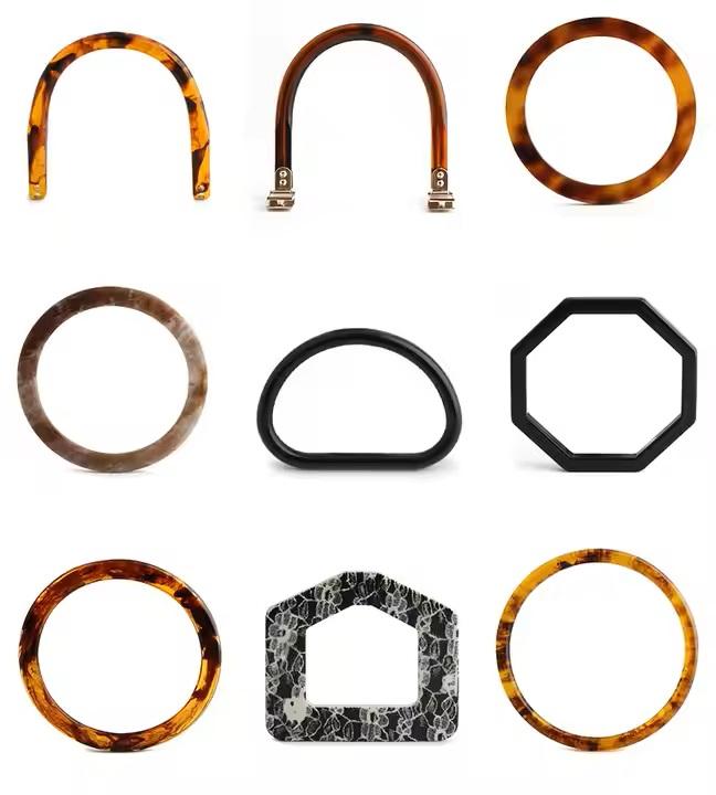 Sac à anneau personnalisé en résine d'acétate d'acide LUCITE poignée en écaille de tortue/sac à main en acrylique en forme de O poignée en écaille de tortue pour sac