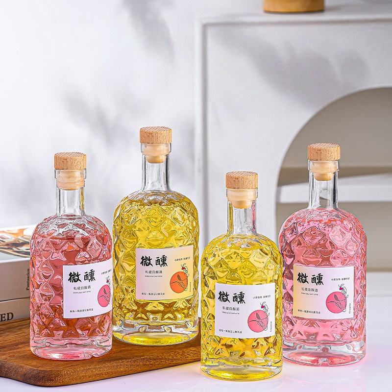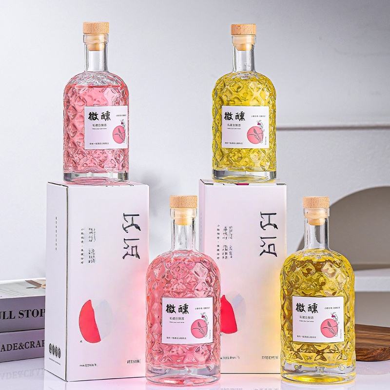 Bouteilles de vodka en verre avec étiquette personnalisée de 375ml 500ml Bouteille de rhum de liqueur de gin whisky en verre de 16oz avec bouchon en liège