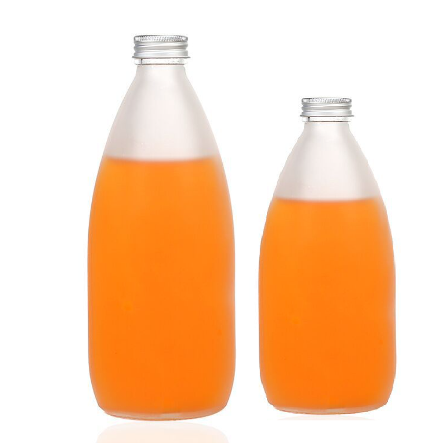 Bouteille en verre givré personnalisée avec étiquette transparente de 250 ml et 500 ml pour café, boissons, jus de fruits, lait, vin, avec bouchon à vis en aluminium