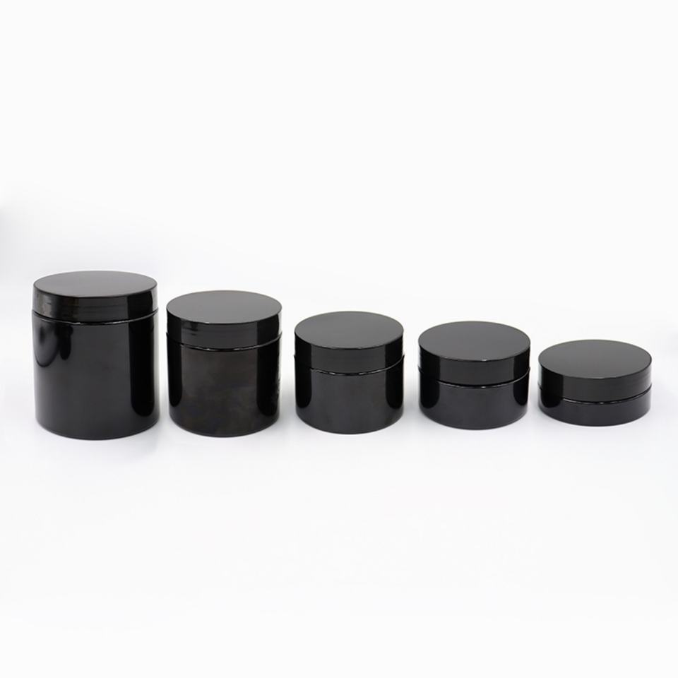Emballages cosmétiques personnalisés, vides, 250 ml, 8 oz, 4 oz, contenants en plastique noir de qualité alimentaire, pots en plastique avec couvercle doré