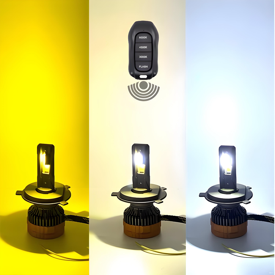 Feux de croisement LED à trois couleurs à télécommande haute puissance 160W avec étiquette personnalisée 9005 9006 H7 H4 H11 Luminosité Feux antibrouillard Super lumineux OEM ODM