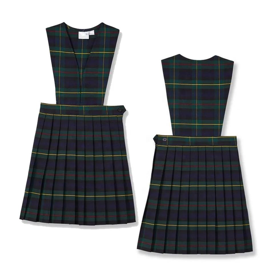 Custom Label Pleated Kids Primary School Wears Cheap Price Cotton Twill Durable Unisex Dress Zip Front Pinafore School Uniforms