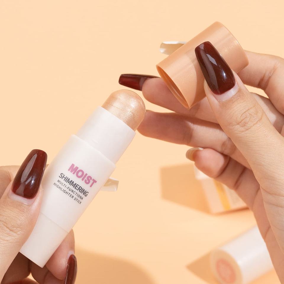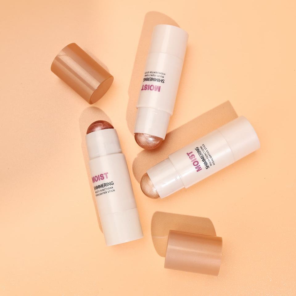 Stick de surligneur crème pastel rose scintillant personnalisé, surligneur pailleté en poudre, bronzer, stick de brillance corporelle, marque privée