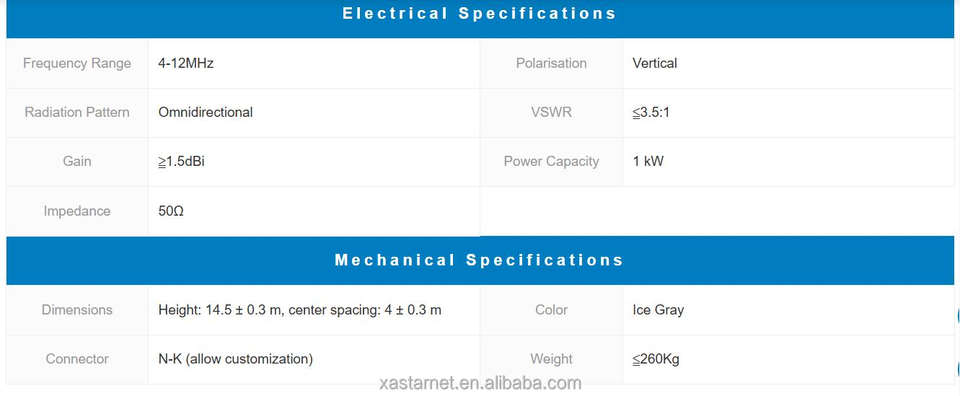 Étiquette personnalisée XW2020 antenne mobile directionnelle à double fouet 50 Ohm polarisation verticale couleur gris glace Communication de la station de base
