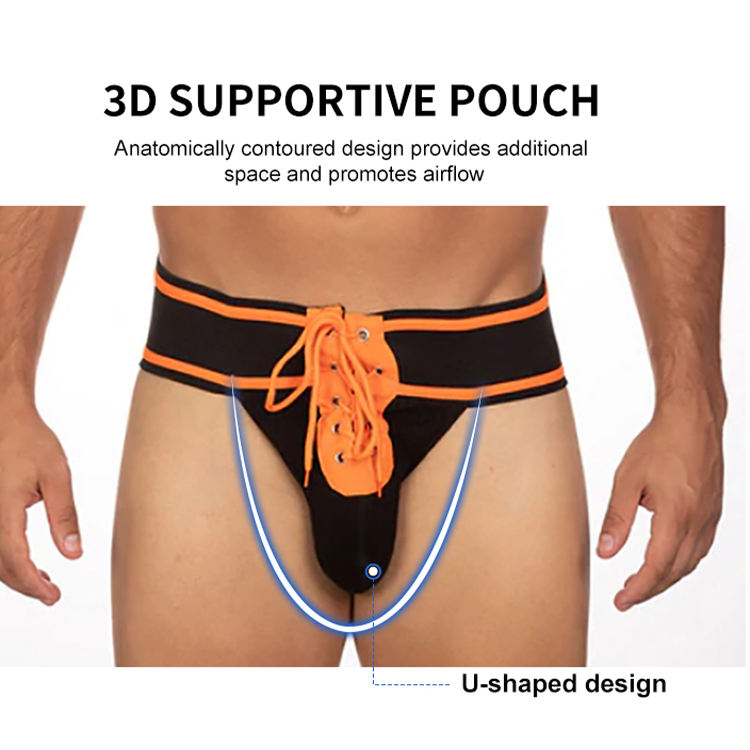 String double lacé personnalisé en 95% coton et 5% élasthanne, sous-vêtements pour hommes gays, design en U tricoté, jockstrap sexy pour hommes
