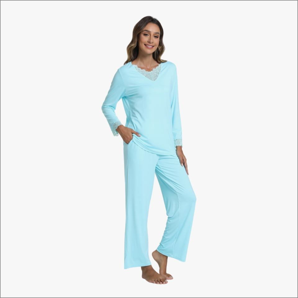Keywords:Soft Bamboo Cotton Striped Women Pajamas for Night Sleep