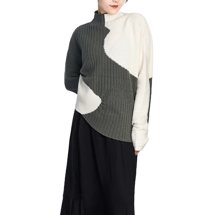 Pulls en laine décontractés pour dames personnalisés Colorblock Patchwork Design Neck Manches longues Winter Fall Fashion Loose Knit Shirt