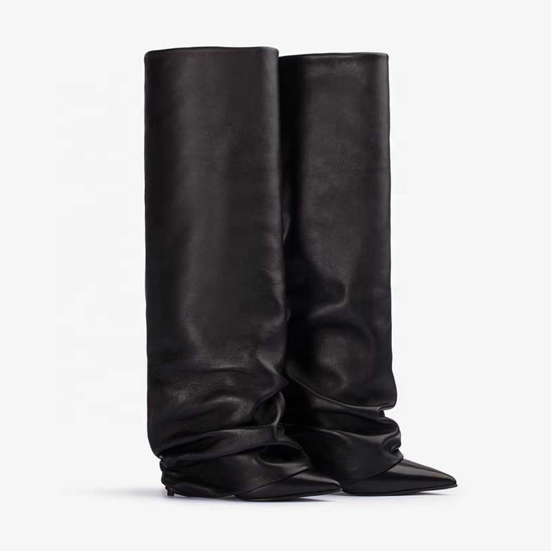 Bottes hautes personnalisées pour femmes à talon fin, bout pointu, pour mollets larges, collection hiver 2024, rehaussantes