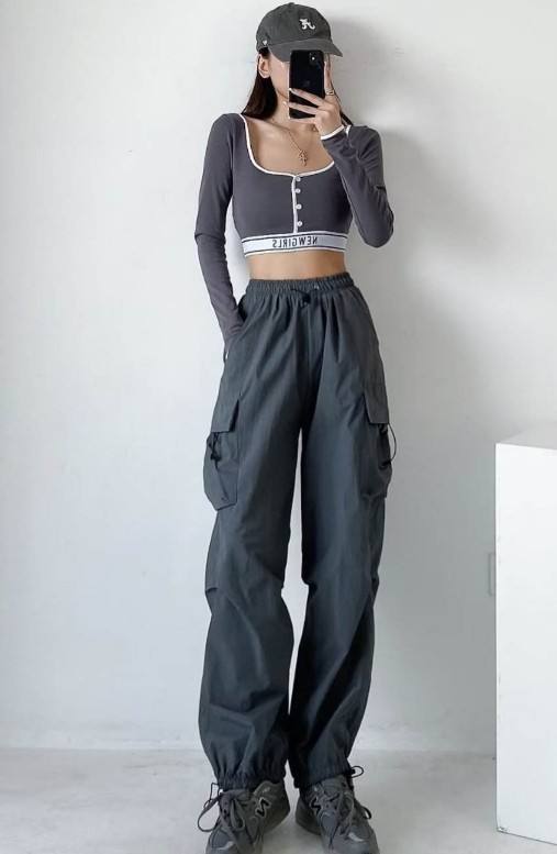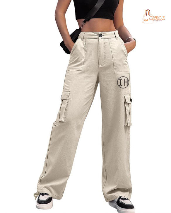 Pantalon cargo décontracté taille haute pour femme, en toile 100% coton, brodé, avec grandes poches, écologique et à séchage rapide, idéal pour l'automne