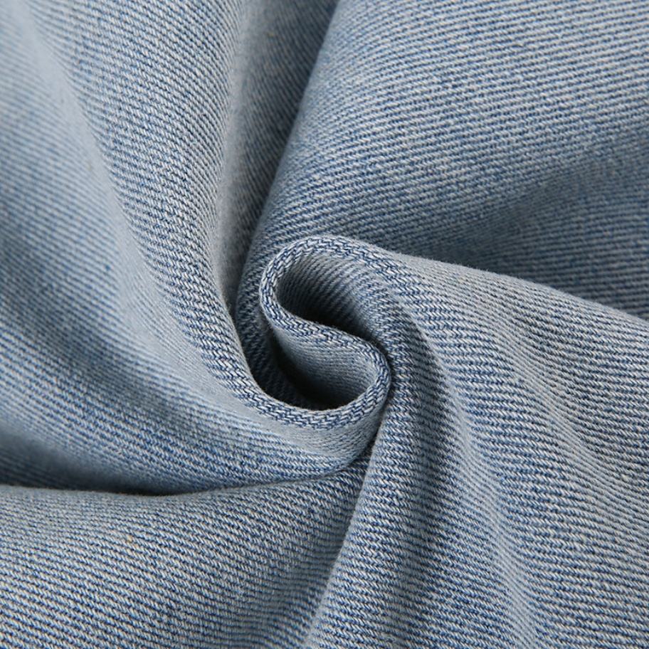 Jupe longue en jean déchiré pour femme, jupe midi en denim tendance, style streetwear, bleu clair délavé, tricotée