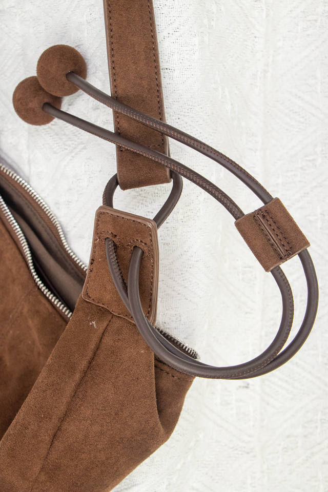 Carry a crescent-shaped bag diagonally across one shoulder