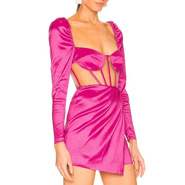 custom lady Summer trending 2022 New Fashion long sleeve sexy club party mesh bodycon one piece hot dress mini women dresses