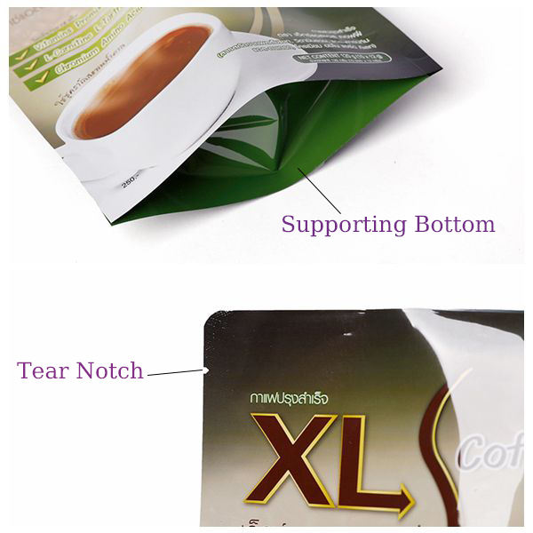 Sacs en aluminium autoportants refermables laminés personnalisés, qualité alimentaire, sacs à café personnalisés, sachets debout