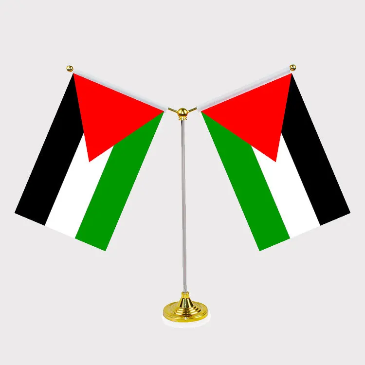 Drapeau de table en polyester avec support de bureau en acier inoxydable pour atterrissage personnalisé avec mât de drapeau de base pour table