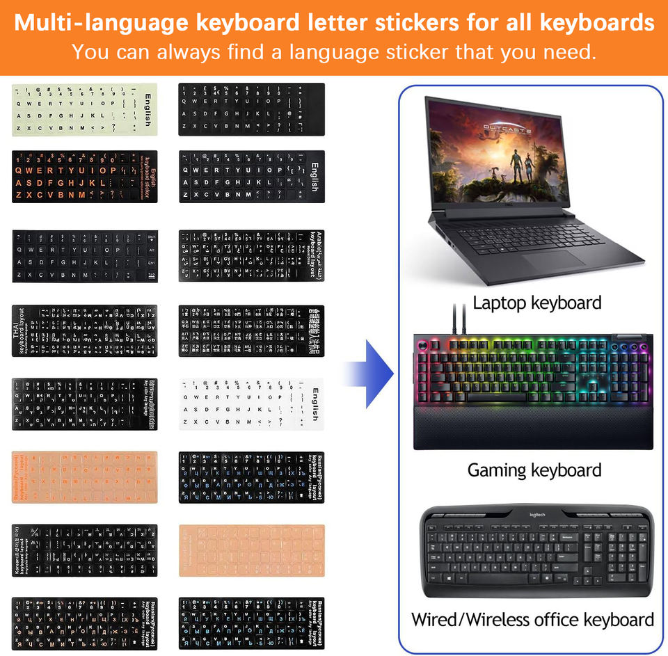 Nom du produit:Autocollants de clavier multilingues personnalisés