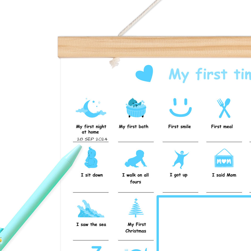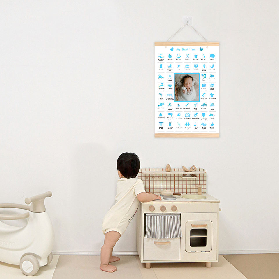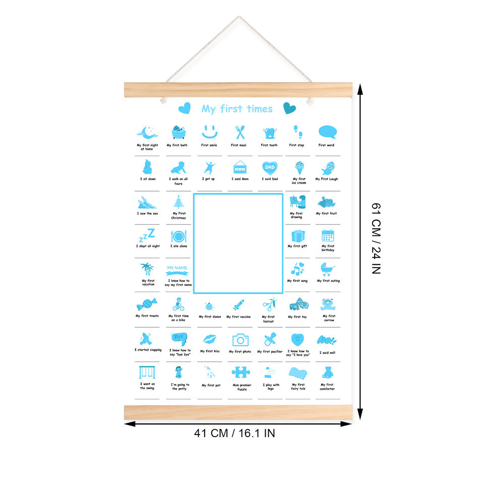 Langue personnalisée My First Times Baby Poster avec aimant Bâtons de bois Baby Shower New Parents Gift Toddler Milestone Memory Poster