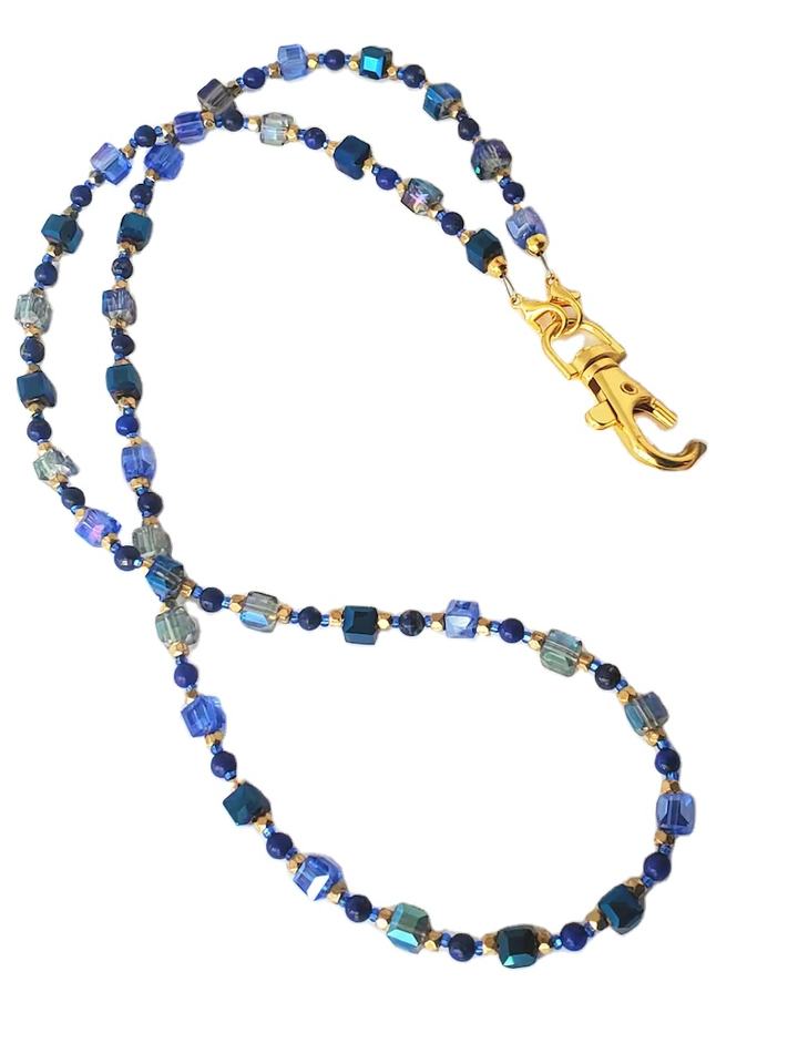 Chaîne de téléphone personnalisée, cordon pour carte d'identité, magnifique chaîne de lunettes bleue faite à la main, cordon tendance artisanal pour badges ou clés