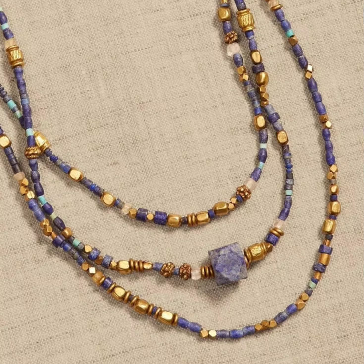 Collier personnalisé en lapis-lazuli avec perles dorées, bijoux en pierres précieuses naturelles, collier artisanal de luxe en pierre bleue, cadeau pour femmes
