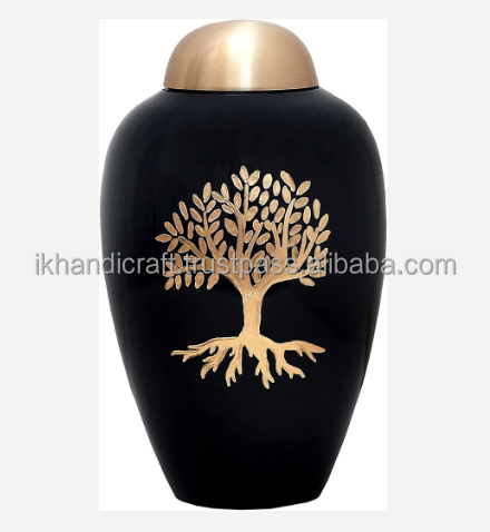 Grande urne personnalisée de style américain pour adultes cercueil funéraire européen en laiton et aluminium stockage de restes de cendres en métal à faible coût couleur noire