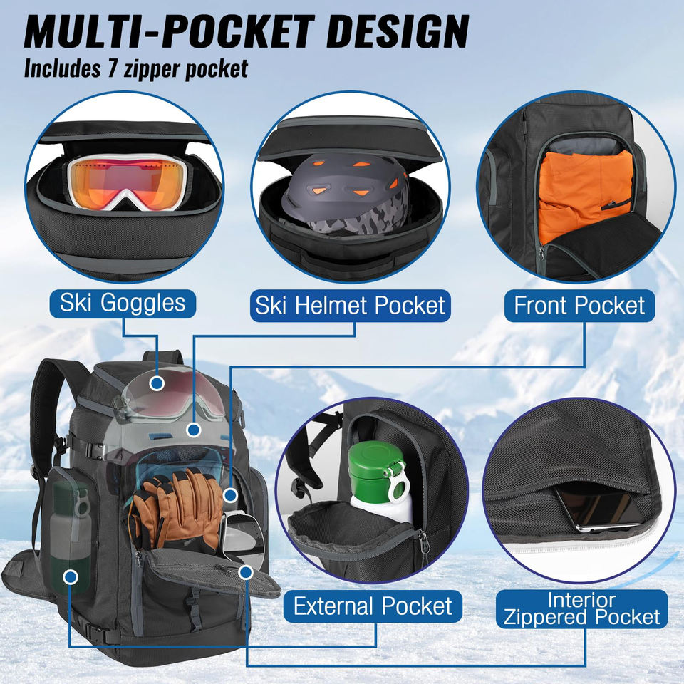 Sac à bottes de ski imperméable grande capacité personnalisé, sac à dos pour équipement de sport d'hiver, casque, 13x11x22 pouces, certifié BSCI
