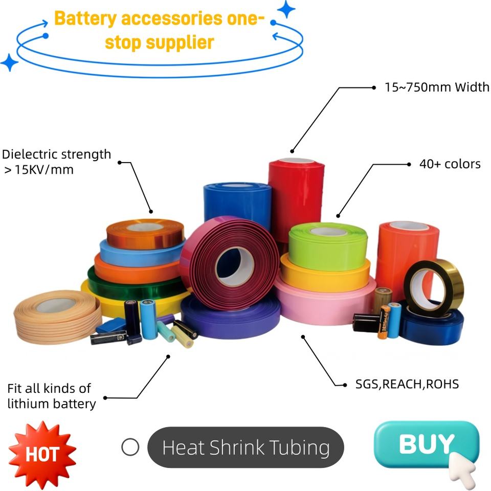 Manchon thermorétractable en PVC sur mesure pour batterie de grand diamètre, rapport 2:1, largeur 400 mm, bleu/noir, 600 V, pour batterie lithium grand public