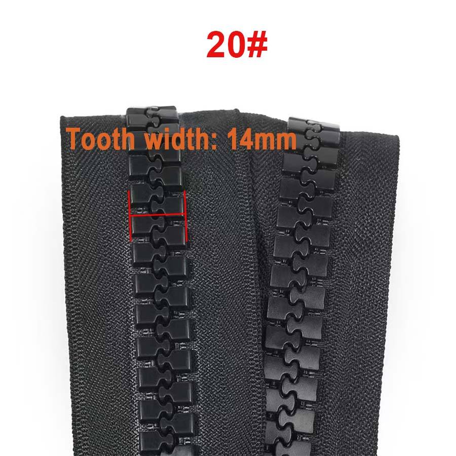 Grand sac à fermeture éclair en plastique à double extrémité ouverte 20 #30 # fermeture éclair en résine à grandes dents matériau écologique