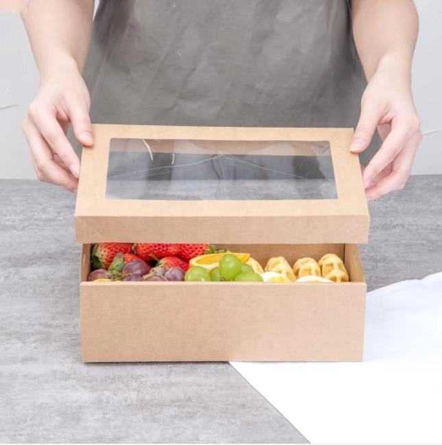 Grand plateau en carton écologique kraft pour la restauration du pain, plateau jetable pour repas à emporter, boîtes d'emballage des aliments