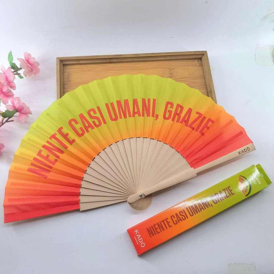 Éventail pliant personnalisé grand format en bambou sculpté, style art populaire, thème musique danse fête Noël, souvenir peint avec motif amour
