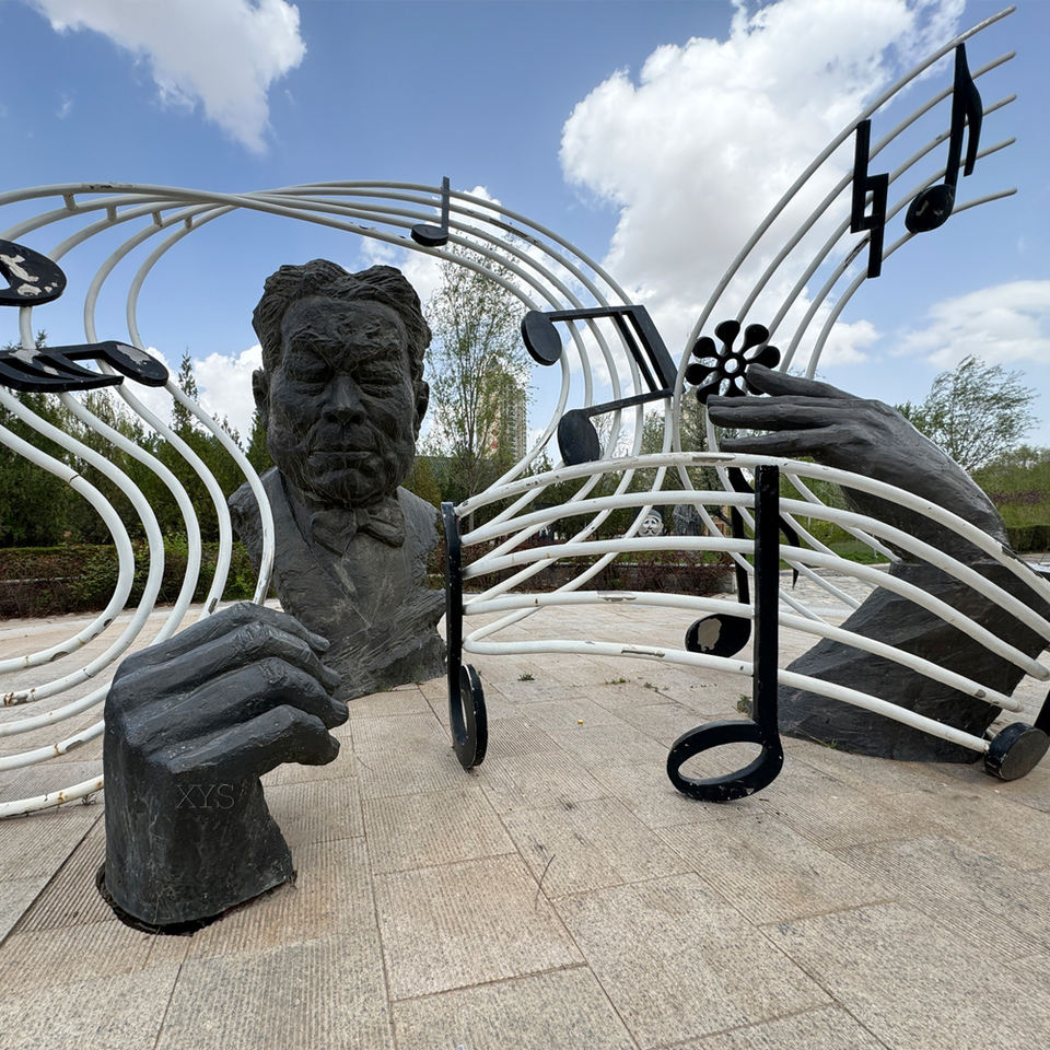 Bronze musician sculpture