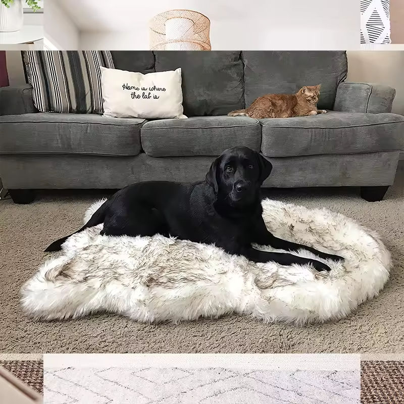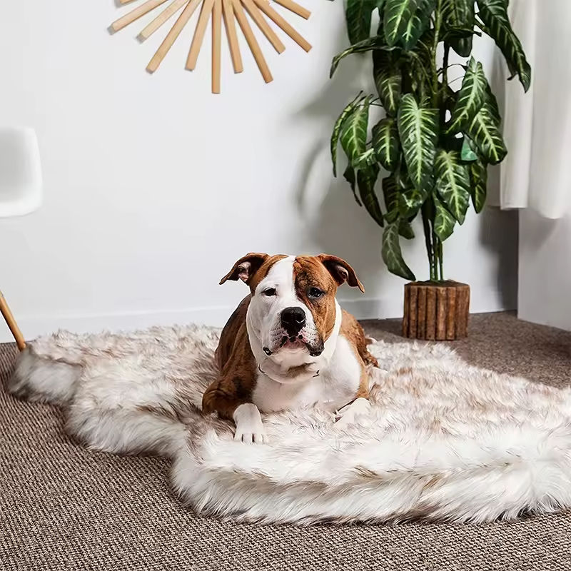Lits orthopédiques personnalisés de luxe en fausse fourrure et cuir pour chats et chiens, modernes, tendance, lavables, en mousse à mémoire de forme, confortables et duveteux, vente en gros