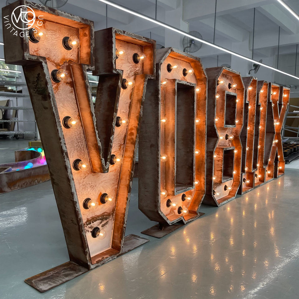 Enseigne lumineuse personnalisée de grande taille, lettres lumineuses au fini vieilli industriel pour la publicité des bars, des magasins et des entreprises