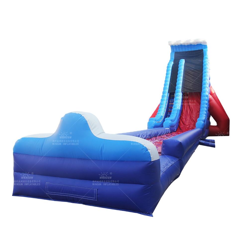 Grande glissière d'eau gonflable extérieure faite sur commande de PVC de message publicitaire rouge et bleu WINSUN géant WSS-225 la capacité 100-500kg 5-10 passagers