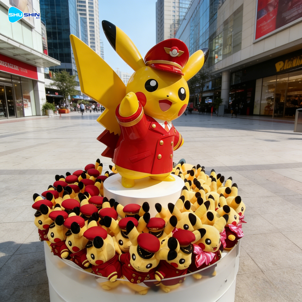 Statue d'extérieur personnalisée Pikachu Anime de grande taille en résine, sculpture décorative pour centres commerciaux et espaces extérieurs