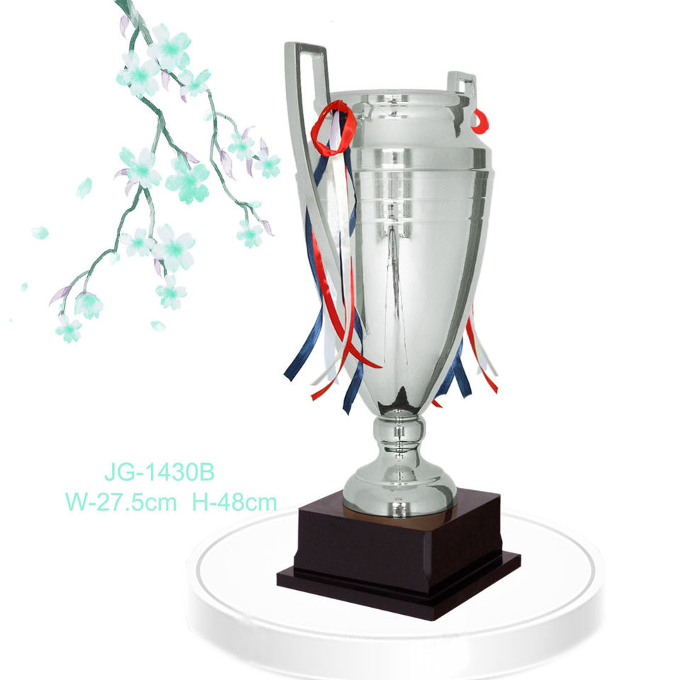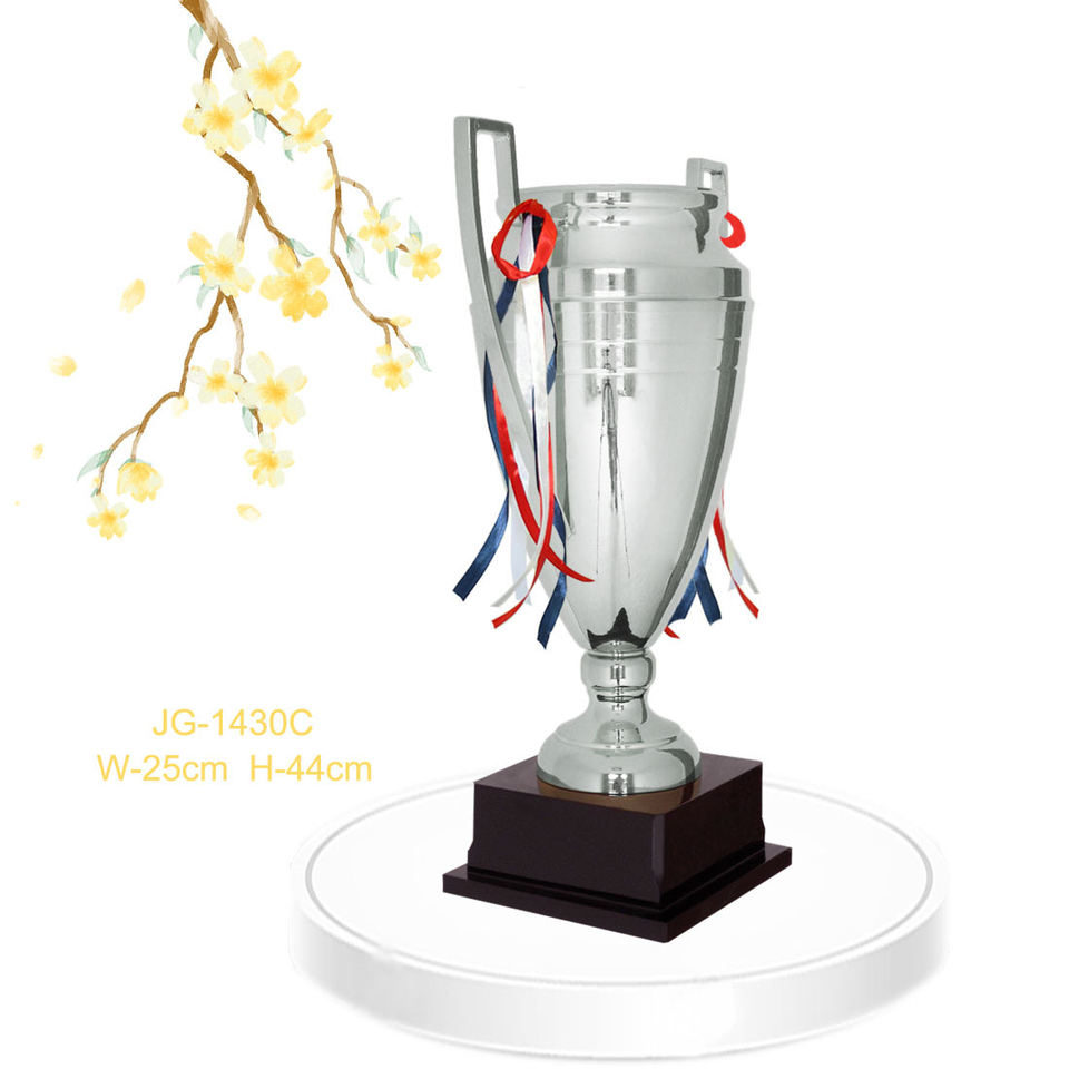 Trophée Métallique Plaqué Argent avec Base en Bois Grande Taille Personnalisable, Trophée Coupe Stéréo, Lettres, Récompense pour Match de Football et Basket-ball
