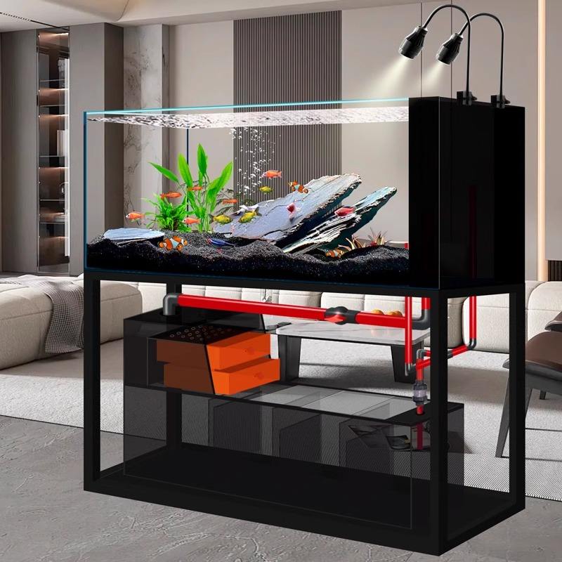 Grand aquarium de poissons en verre ultra clair personnalisé aquarium marin de récif rectangulaire avec ruisseau pour l'affichage de la vie aquatique