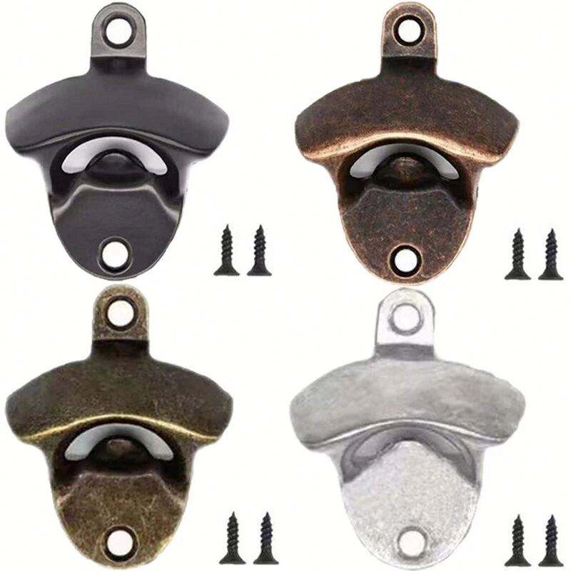Décapsuleur mural en laiton gravé au laser sur mesure, en fonte, sérigraphié, plaqué or, style art populaire, avec mousqueton sonore