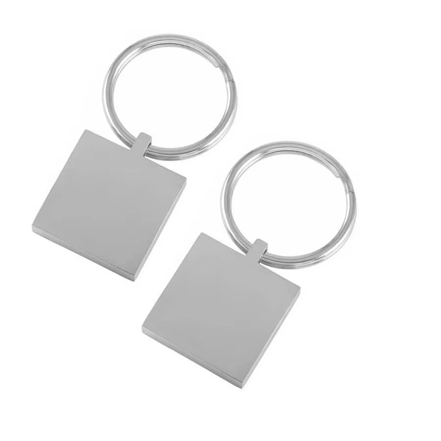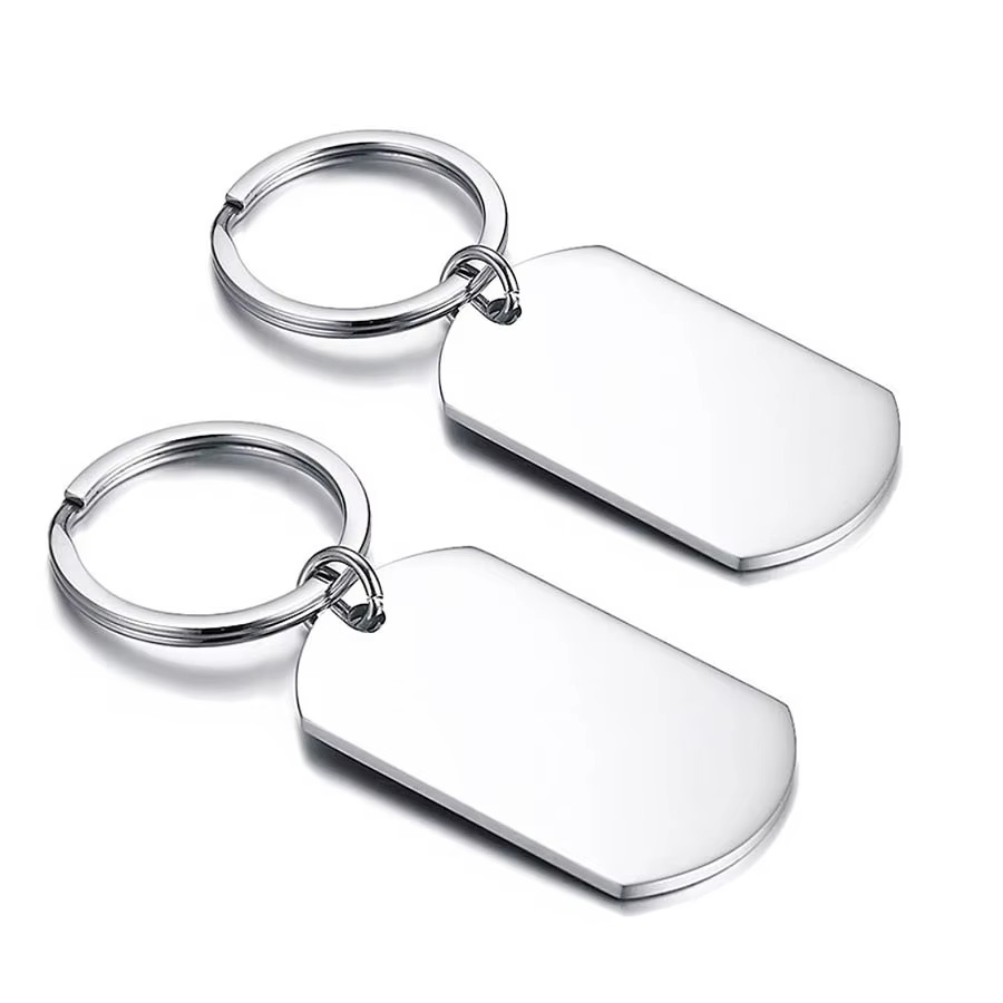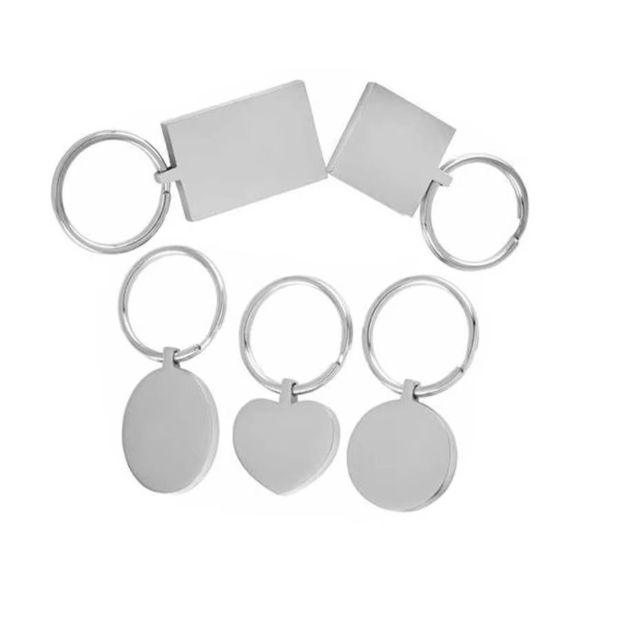 Porte-clés personnalisé en forme de cœur gravé au laser Chariot en métal et fer en acier inoxydable Porte-monnaie carré poli Barre plate Porte-clés vierge
