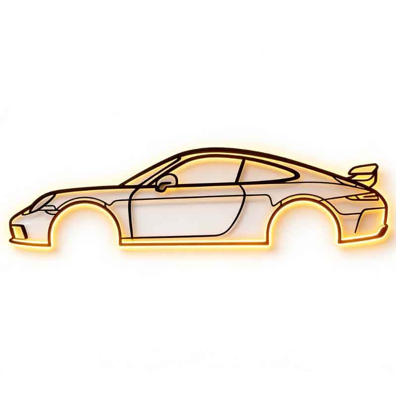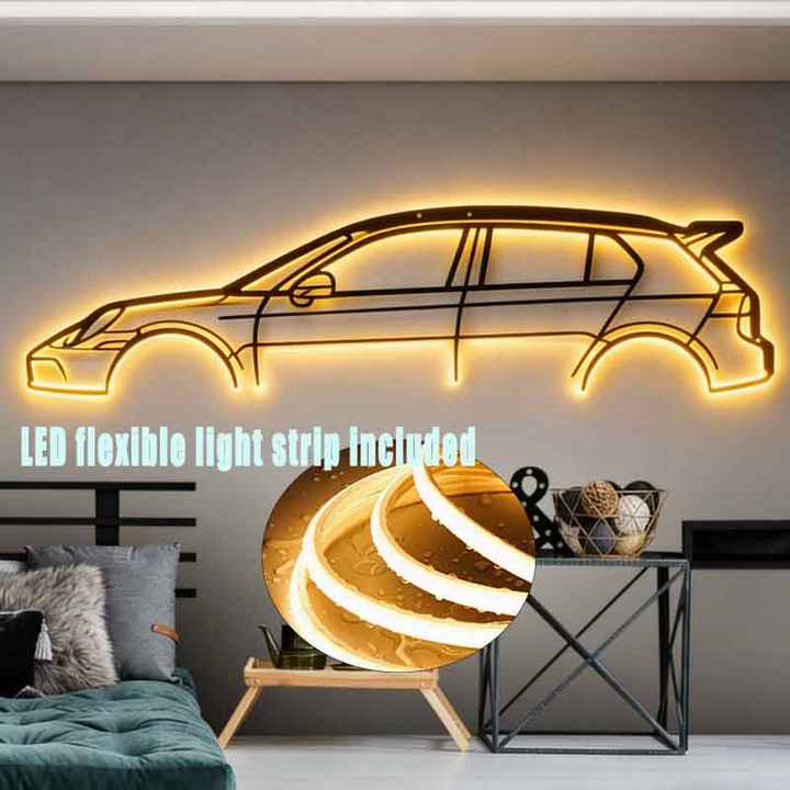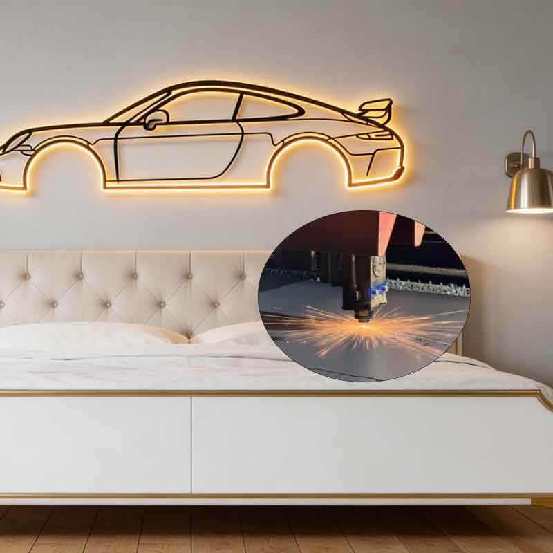 Décoration Murale LED en Métal Gravée au Laser Personnalisée - Silhouette de Voiture Sportive avec Rétroéclairage pour Garage et Caverne d'Homme