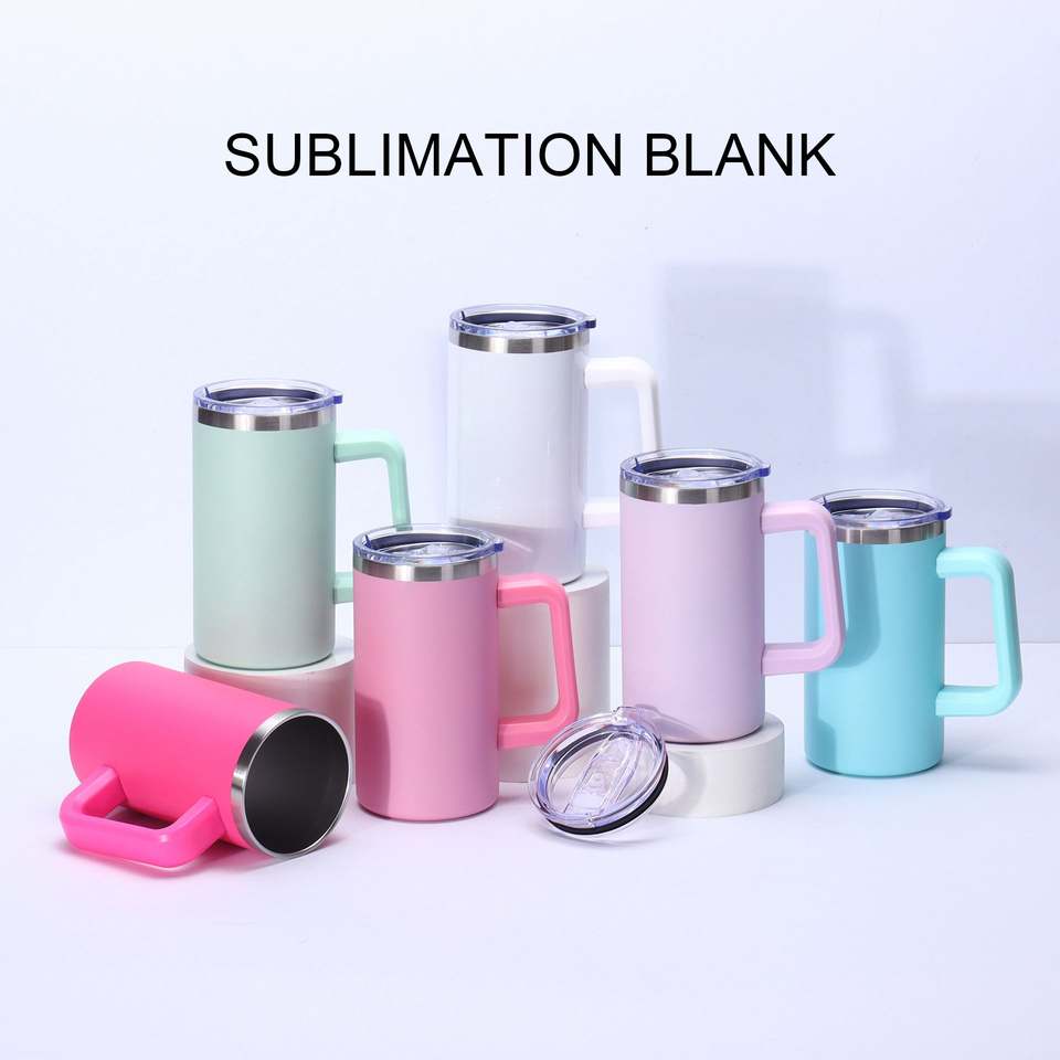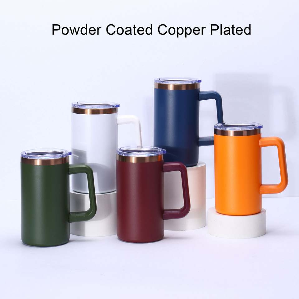 Mug de voyage en acier inoxydable gravé au laser sur mesure, revêtement en poudre, plaqué cuivre, 20 oz, gobelet coloré avec poignée amovible