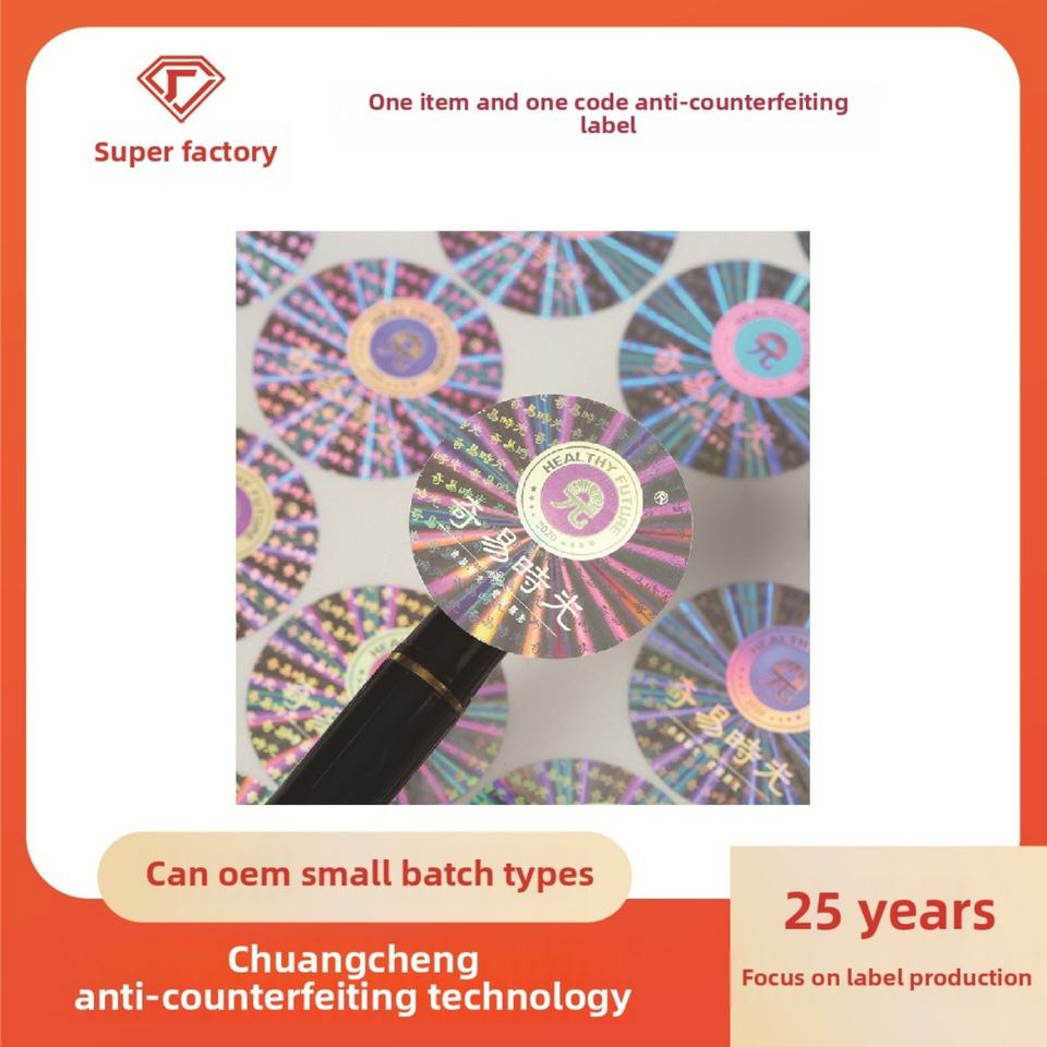 Étiquette holographique anti-contrefaçon personnalisée au laser, matériau PET durable avec adhésif résistant pour les produits