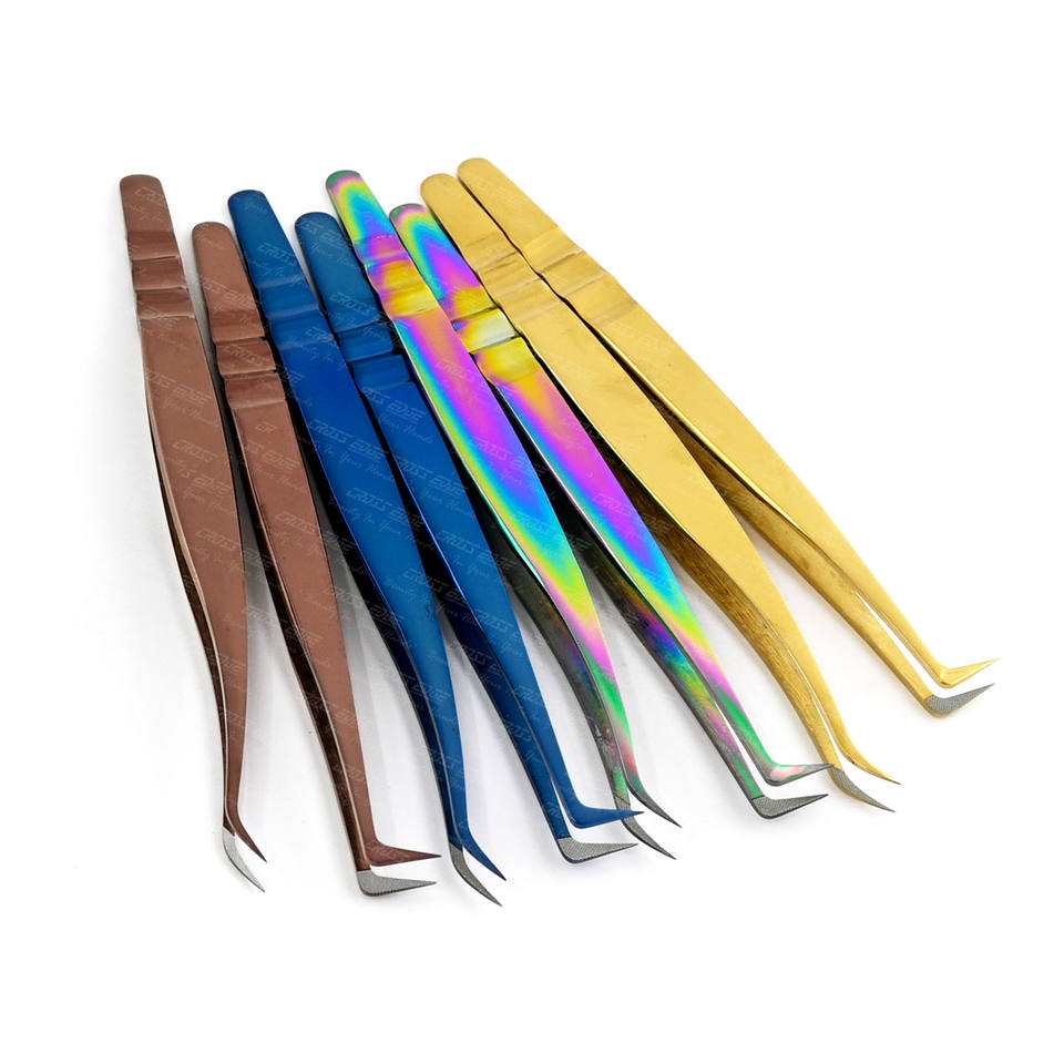 Nom du produit:Personnalisé Lash Pince À Épiler En Acier Inoxydable Or Clair Avion Fiber