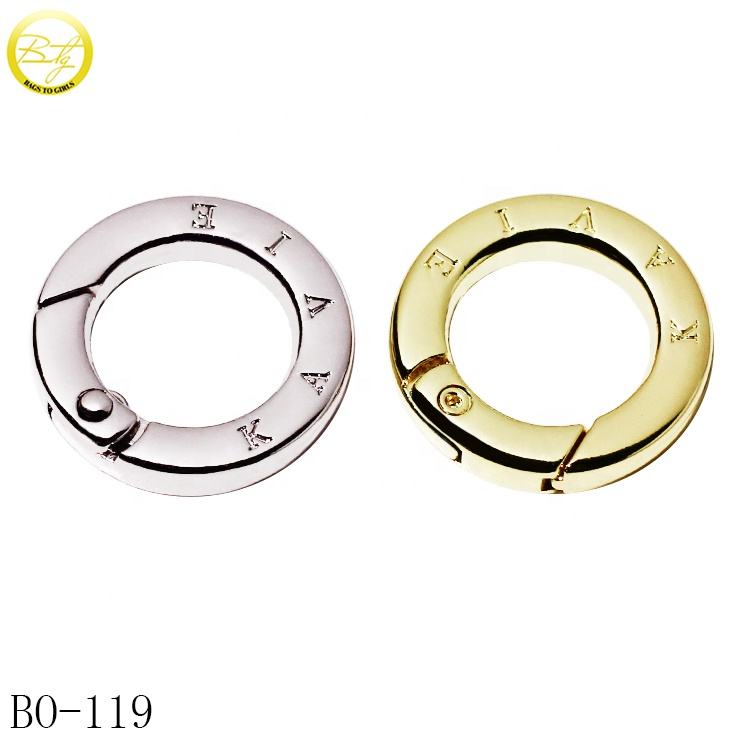 Mousqueton rond ouvrable avec logo laser personnalisé ajusteur de porte-clés clips d'anneau en métal pour maillots de bain bikini en alliage de zinc boucles à ressort en métal