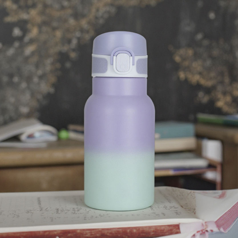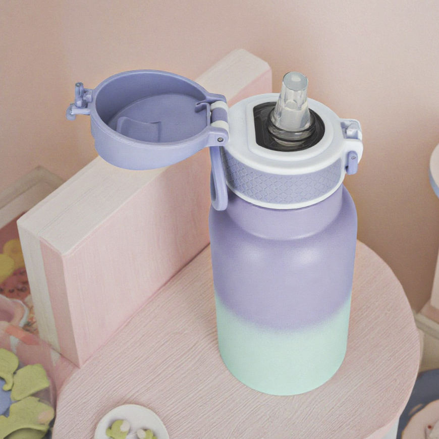 Nouvelle gourde portable en acier inoxydable avec anse, couleur dégradée, isolée, sans BPA, pour l'extérieur, avec paille en silicone
