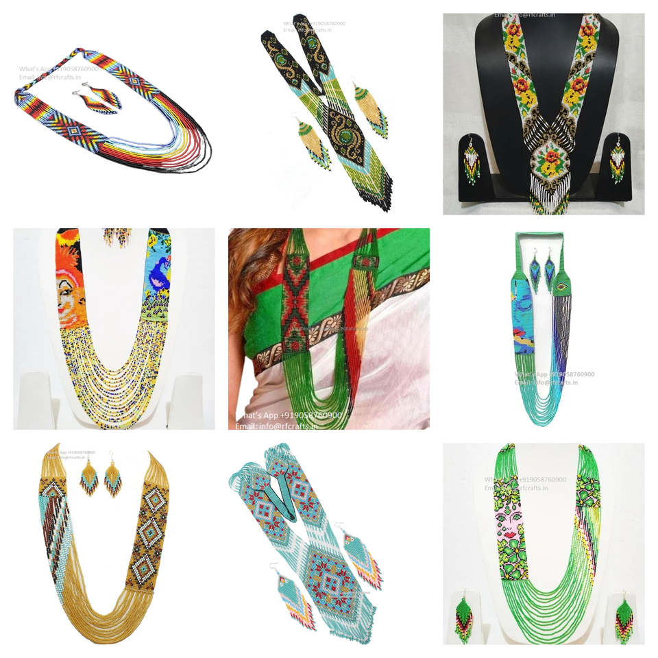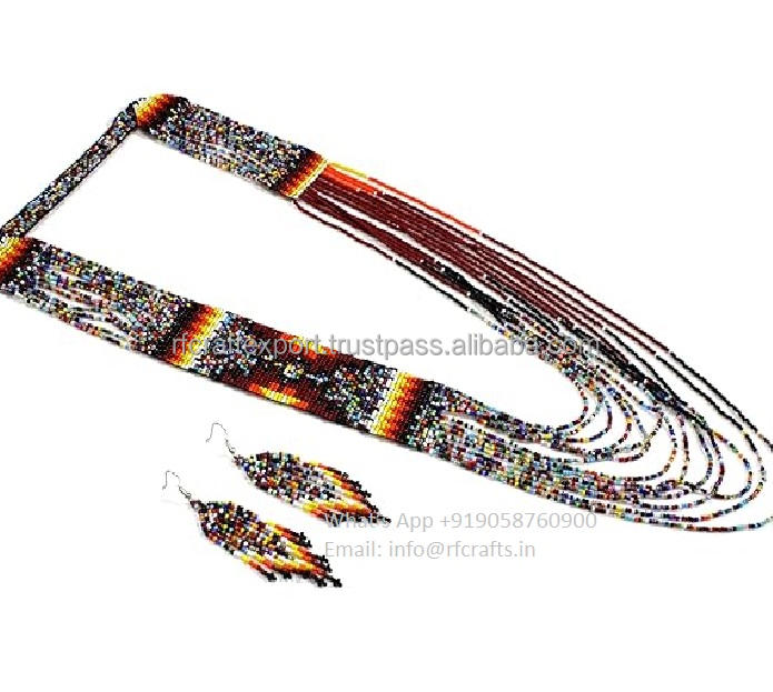 Collier ras du cou en perles de verre tribales à couches personnalisées avec boucles d'oreilles ethniques assorties