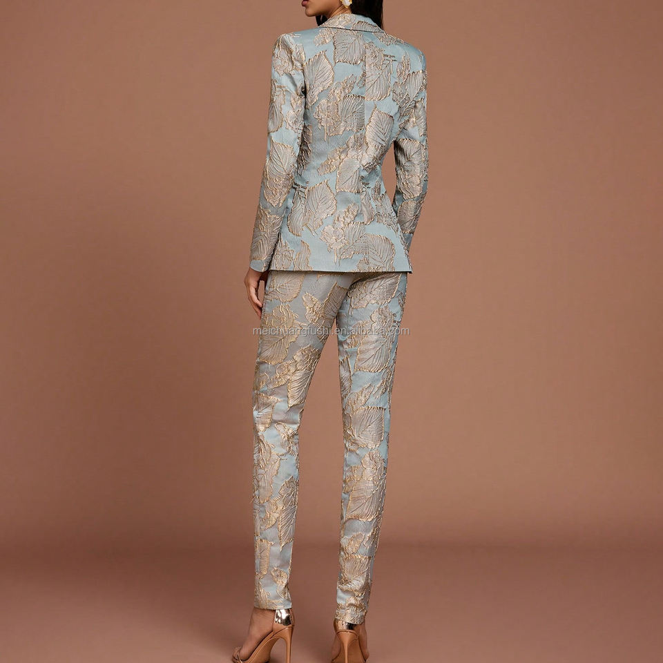 Ensemble de costume blazer à imprimé feuilles personnalisé pour femmes, pantalon élégant et formel pour femmes