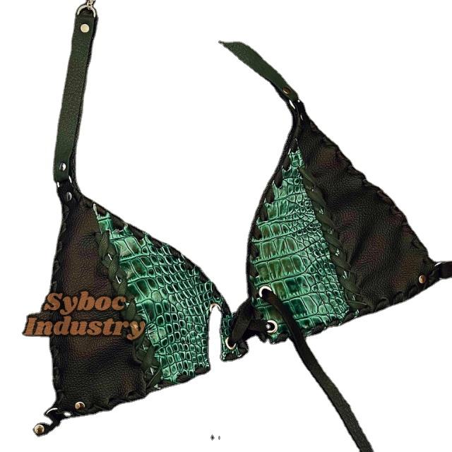 Custom Leather Bra Supplier New Crocodile Embossed Genuine Sheep Hide Fetish Plus Size Leather Bra For Womens