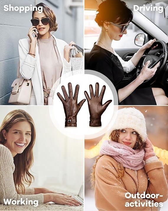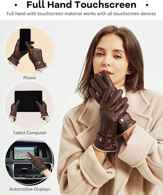 Gants d'hiver en cuir personnalisés pour femmes doublure super douce et chaude main complète écran tactile antidérapant thermique décontracté OEM
