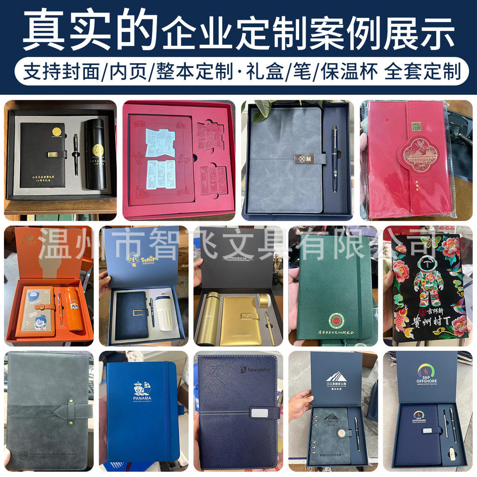 Ensemble cadeau de carnet en cuir personnalisé, reliure filée, papier 80g, impression numérique, personnalisation, usage professionnel et bureautique